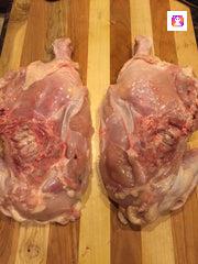 Apply Meat Church Deez Nuts Pecan rub to all sides of the chicken; underneath and on top of the skin. We also recommend working your hands underneath the chicken skin and applying rub directly on the meat. This will give your eaters a really flavorful bite even if they don't get any skin!